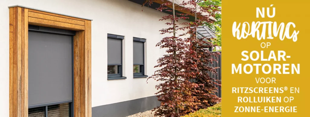 Tijdens de actieperiode van 3 februari 2025 tot en met 2 maart 2025 ontvang je korting op de bediening bij aanschaf van een rolluik en/of ritzscreen®. Je ontvangt de korting per aangeschaft product.